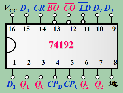 192 是一个16位的计数器, D_0 ~D_3 为置数端口,Q_0 ~ Q_3 为输出端口。